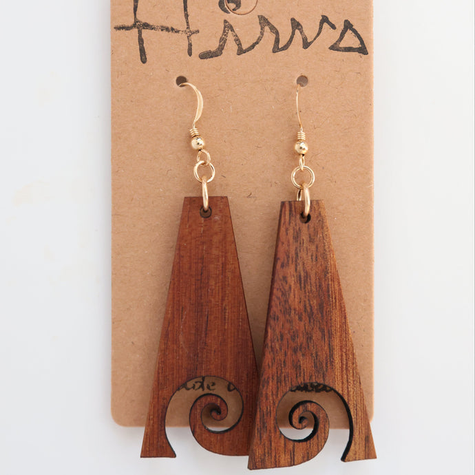 'Iwa Hawaiian Koa Wood - 14k Gold Filled/ Sterling Silver Earrings