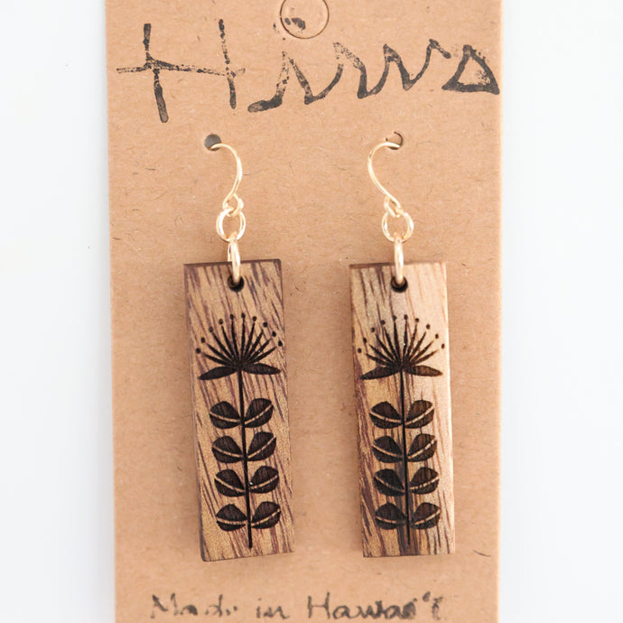 Laua'e Hawaiian Koa Wood - 14k Gold Filled/ Sterling Silver Earrings