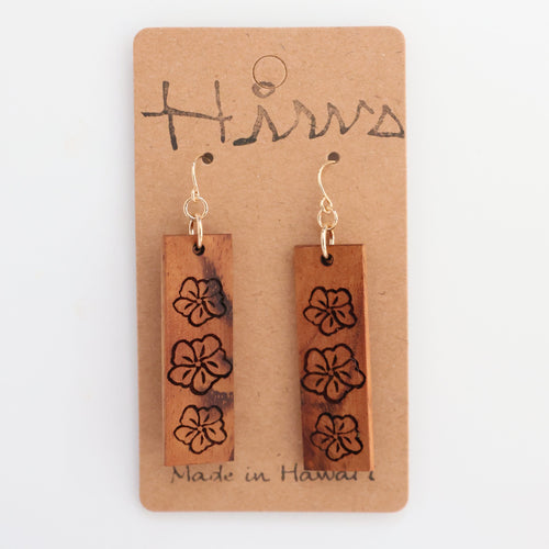 'Ilima Quilt Hawaiian Koa Wood - 14k Gold Filled/ Sterling Silver Earrings