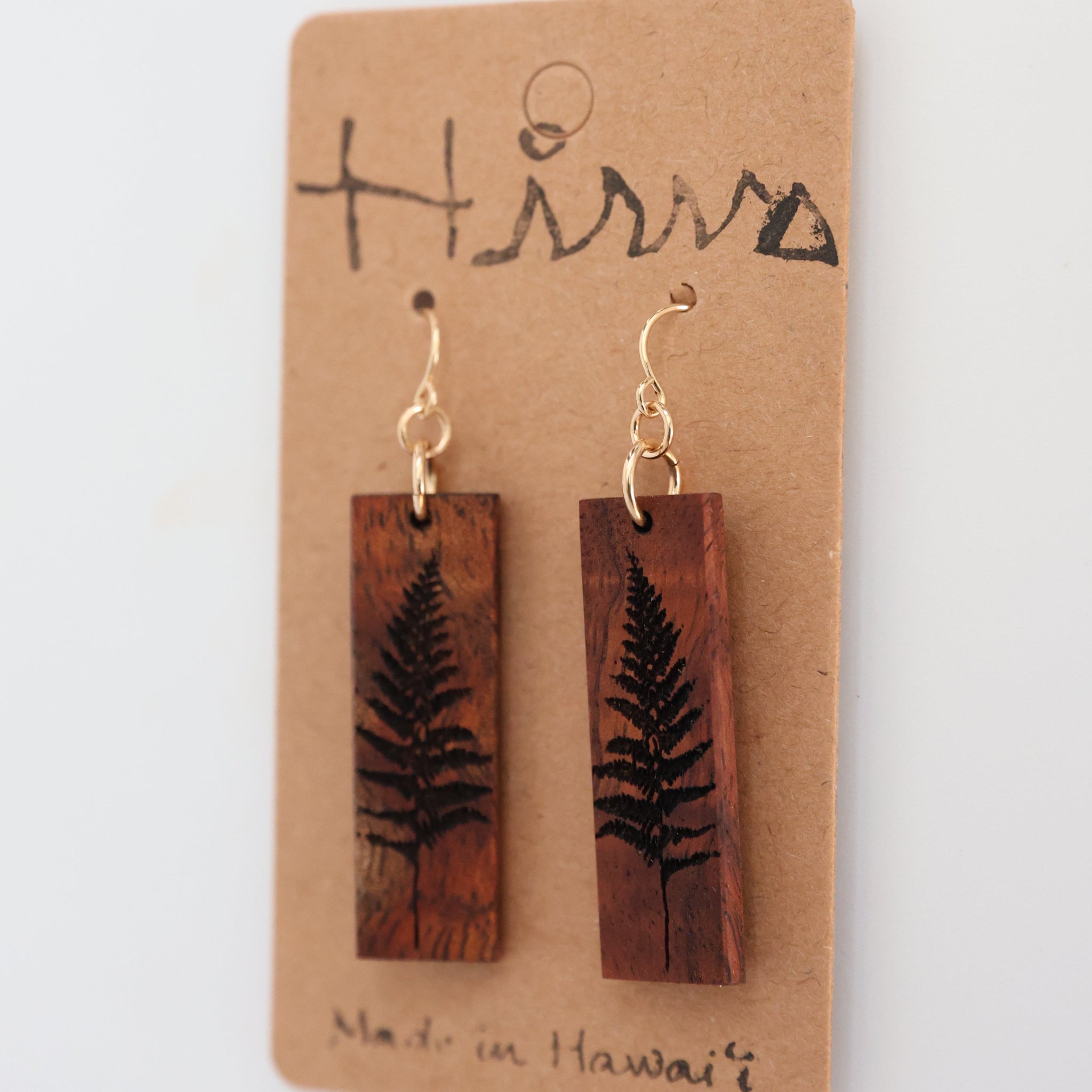 Palapalai, native Hawaiian fern, design earring made with Hawaiian Koa Wood.