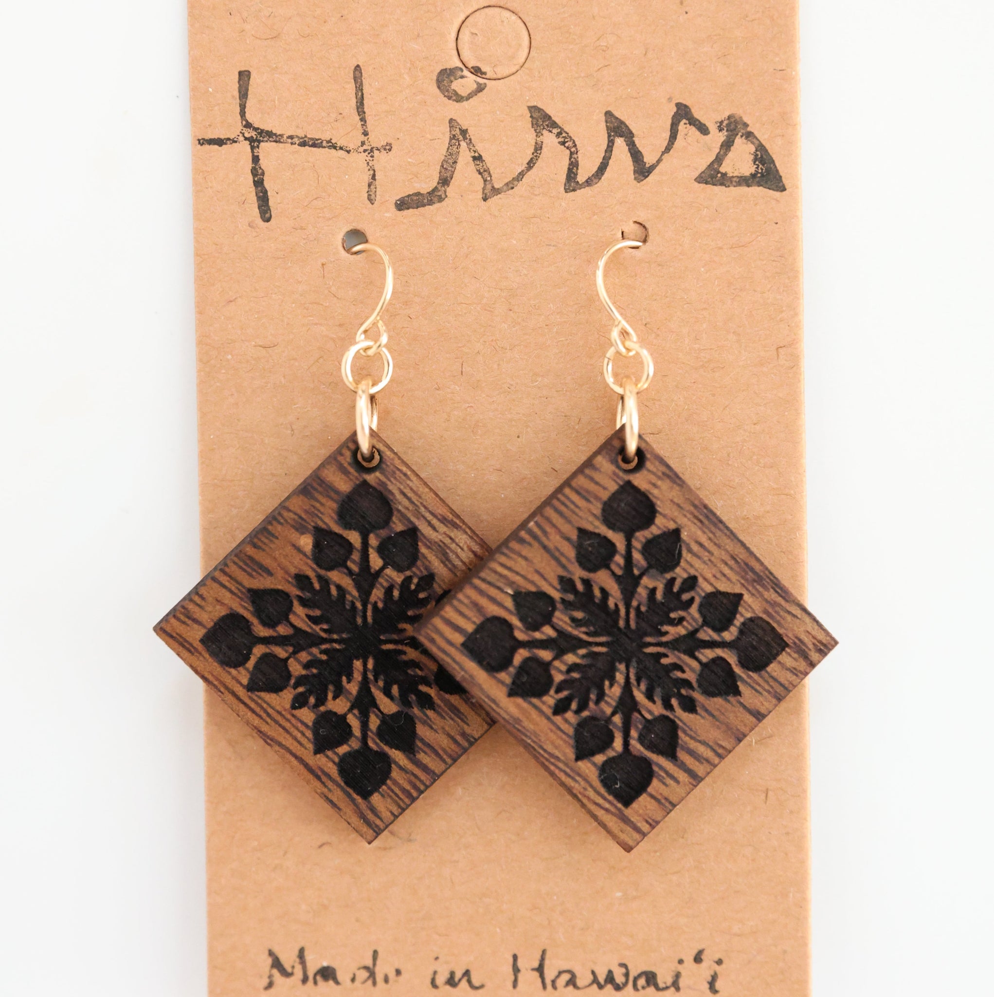 Anthrium Quilt design earrings made with Hawaiian Koa Wood.