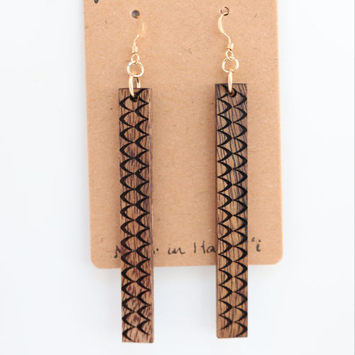 Huinakolu Triangle Kapa Hawaiian Koa Wood - 14k Gold Filled/ Sterling Silver Earrings