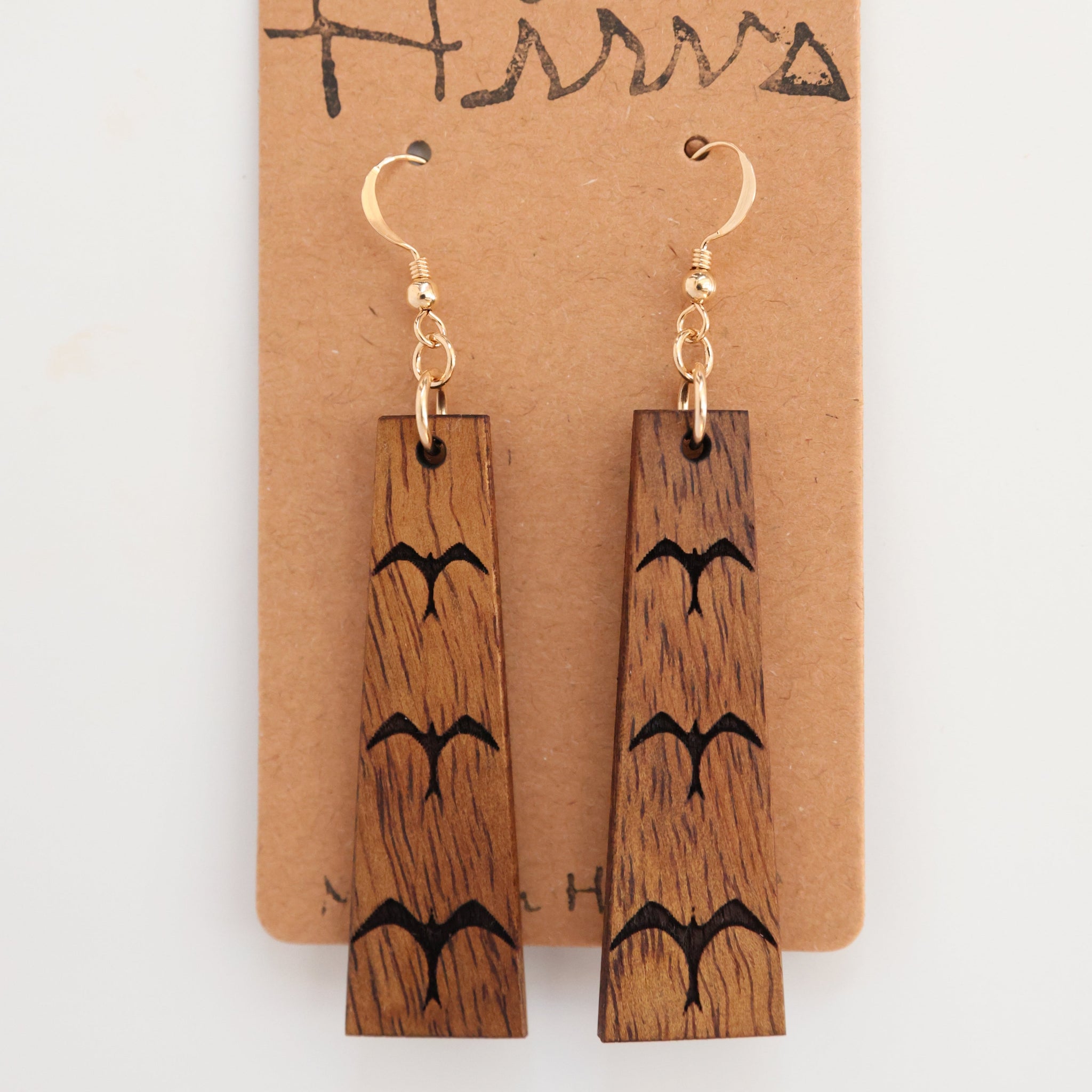 'Iwa, frigate, design earring made with Hawaiian Koa Wood.